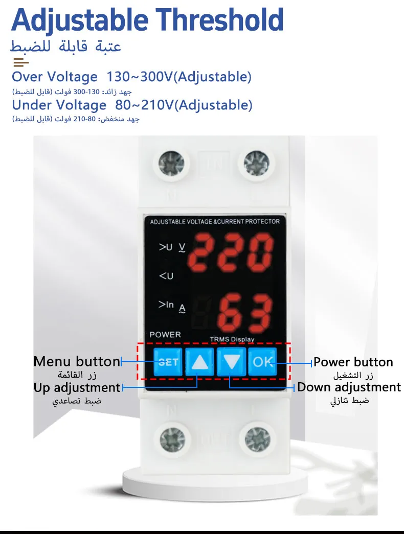 - Prueba de funcionamiento: manualmente o utilizando una fuente de alimentación ajustable, baje el voltaje por debajo del umbral de bajo voltaje y observe si el protector corta la carga; luego ajuste nuevamente al voltaje normal y confirme si el protector se reinicia automáticamente después del retraso establecido.